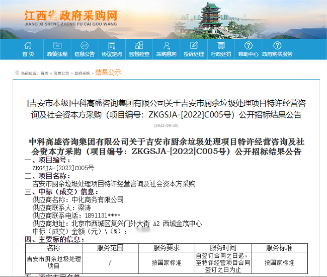 中化商務(wù)曾于2019年為吉安市生活垃圾焚燒發(fā)電項(xiàng)目提供PPP咨詢服務(wù),并獲得客戶高度認(rèn)可。目前,該項(xiàng)目已建成并穩(wěn)定運(yùn)行。9月,中化商務(wù)再次中標(biāo)江西吉安市廚余垃圾處理項(xiàng)目特許經(jīng)營咨詢及社會資本方采購項(xiàng)目,彰顯了中化商務(wù)服務(wù)區(qū)域經(jīng)濟(jì),推動產(chǎn)業(yè)發(fā)展的愿景。